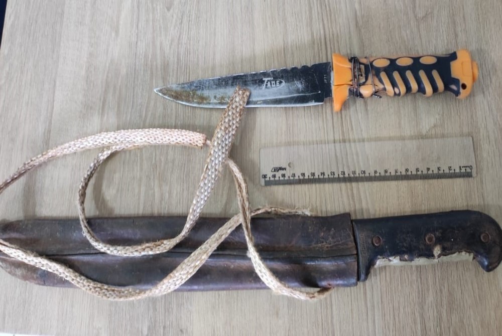 Em Angélica, a equipe policial foi acionada para atender uma denúncia de violência doméstica no bairro Esperança. No local, os policiais constataram que um homem de 39 anos havia agredido e ameaçado sua esposa, de 63 anos, utilizando uma faca de aproximadamente 32 cm e um facão de 48 cm. Ele também teria danificado o celular da vítima. O suspeito foi imediatamente detido e conduzido à Delegacia de Polícia Civil de Angélica, para as providências cabíveis.